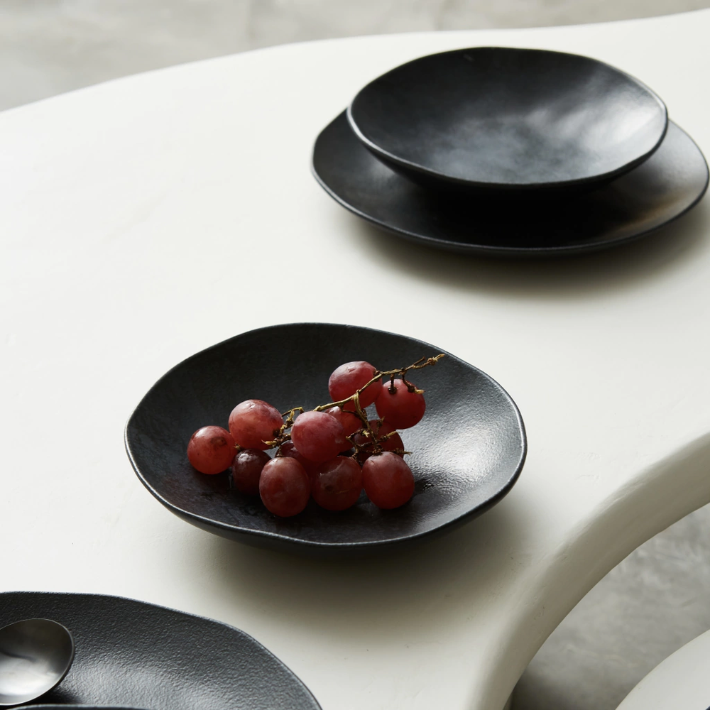 Plato hondo de 21,2cm de diametro x 4,5cm de altura, acabado orgánico. Terminación opaca levemente satinado, color carbon. Material: gres. Apto lavavajillas, microondas y horno. Recomendacion: utilizar cubiertos de aleacion dura, para cuidar el plato.