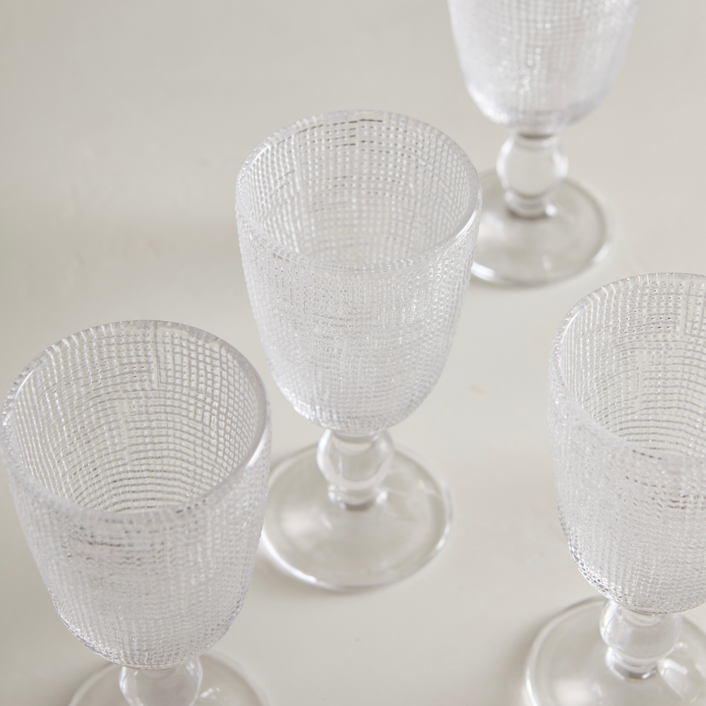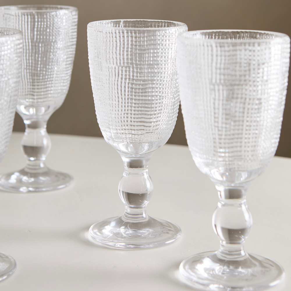 Set de 6 copas de vino labradas en vidrio transparente. Capacidad: 260ml Medidas: 8x14,4cm