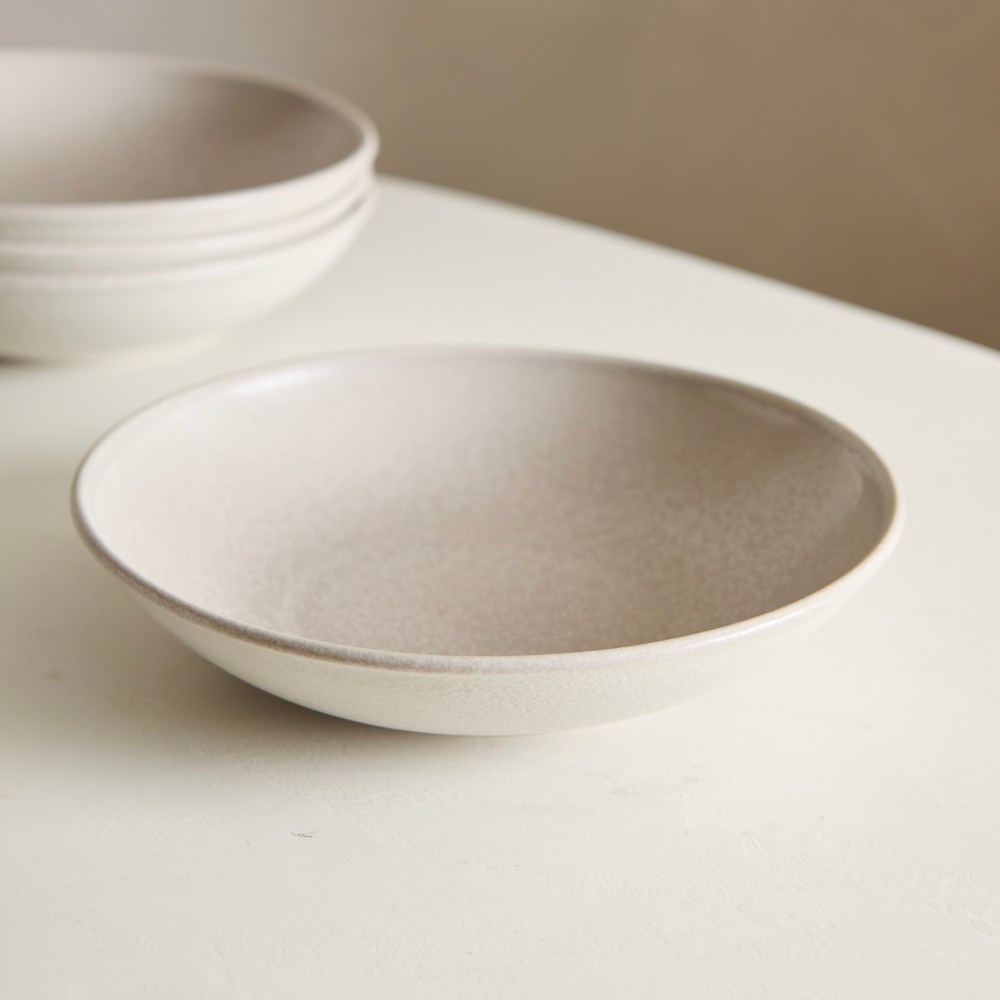 Plato hondo de gres, de 20,5cm de diametro y 893ml de capacidad, de uso diario. Apto lavavajillas, microondas y golpes de horno.