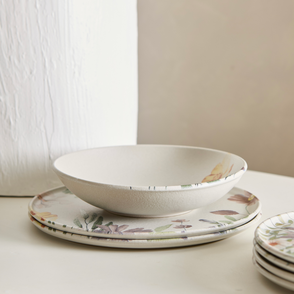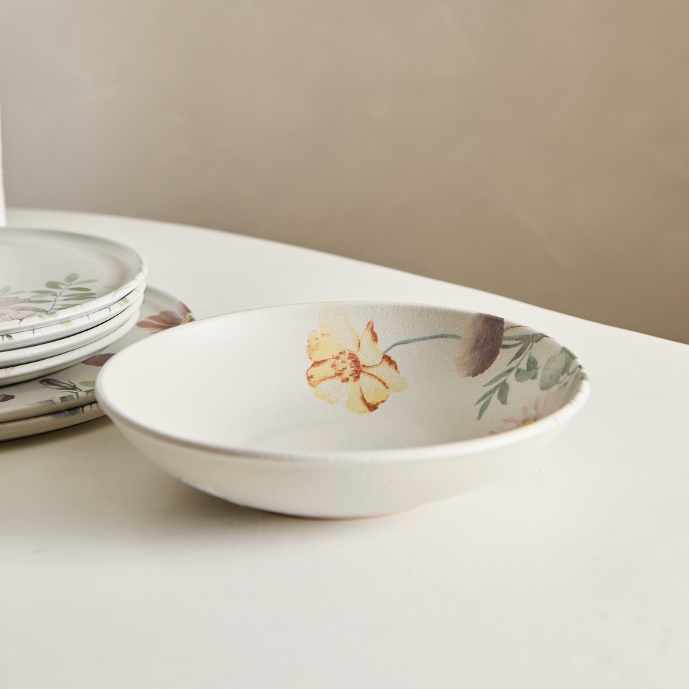 Plato hondo de gres, de 20,5cm de diametro y 893ml de capacidad, de uso diario. Apto lavavajillas, microondas y golpes de horno.