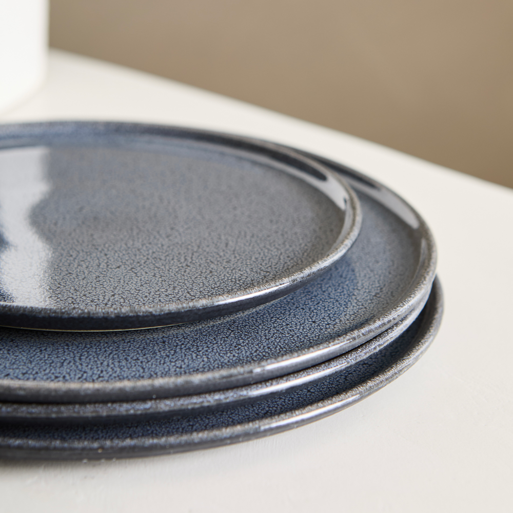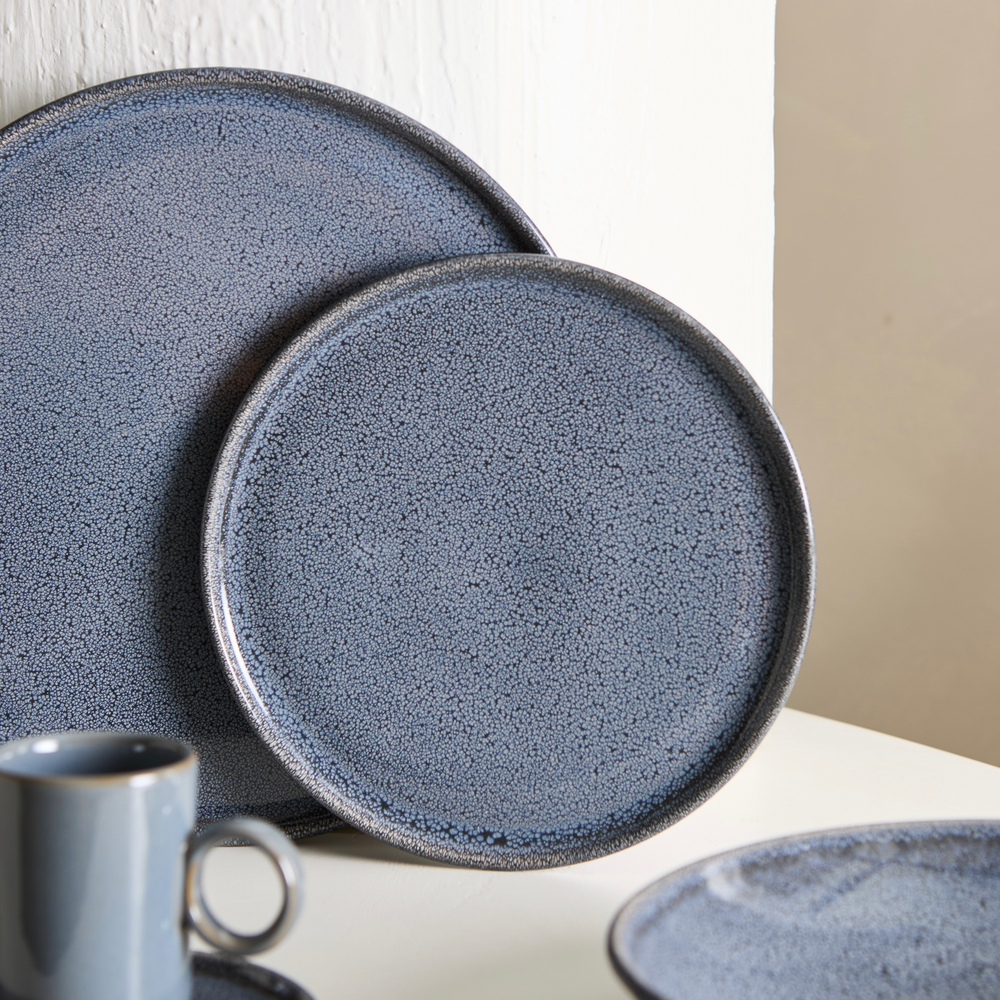 Plato de postre de gres, de 19,5cm de diametro, de uso diario. Apto lavavajillas, microondas y golpes de horno.