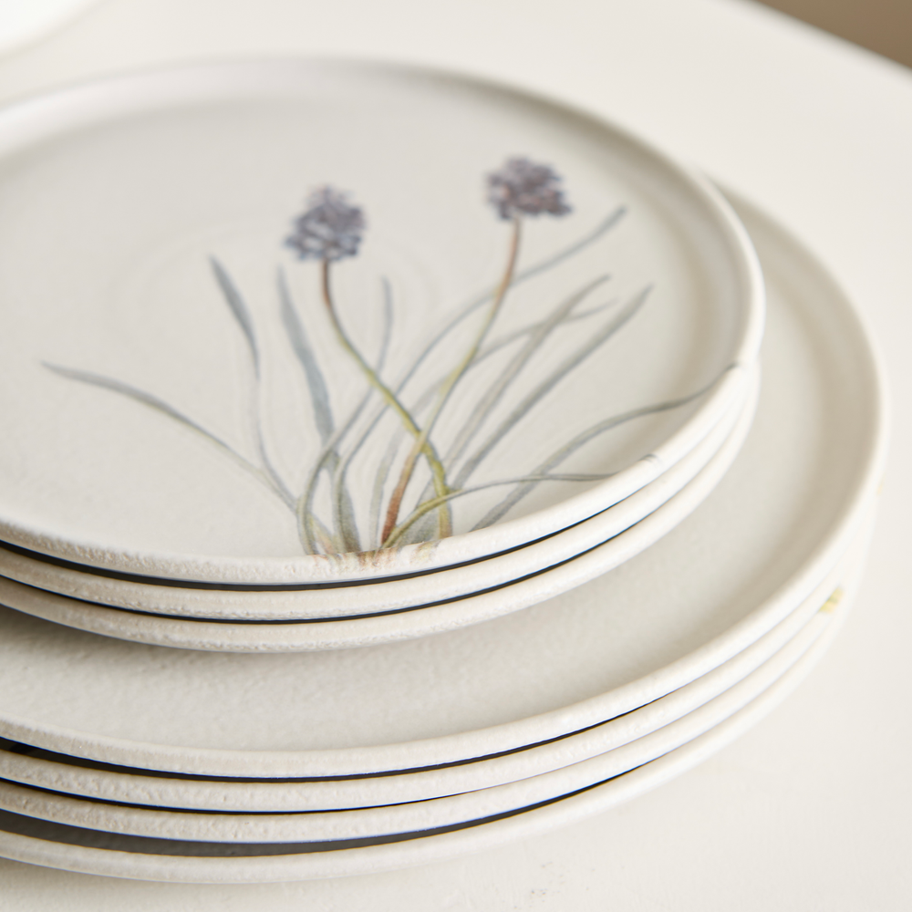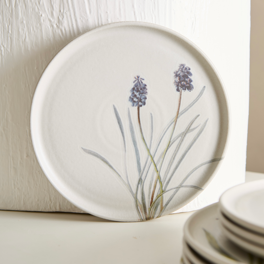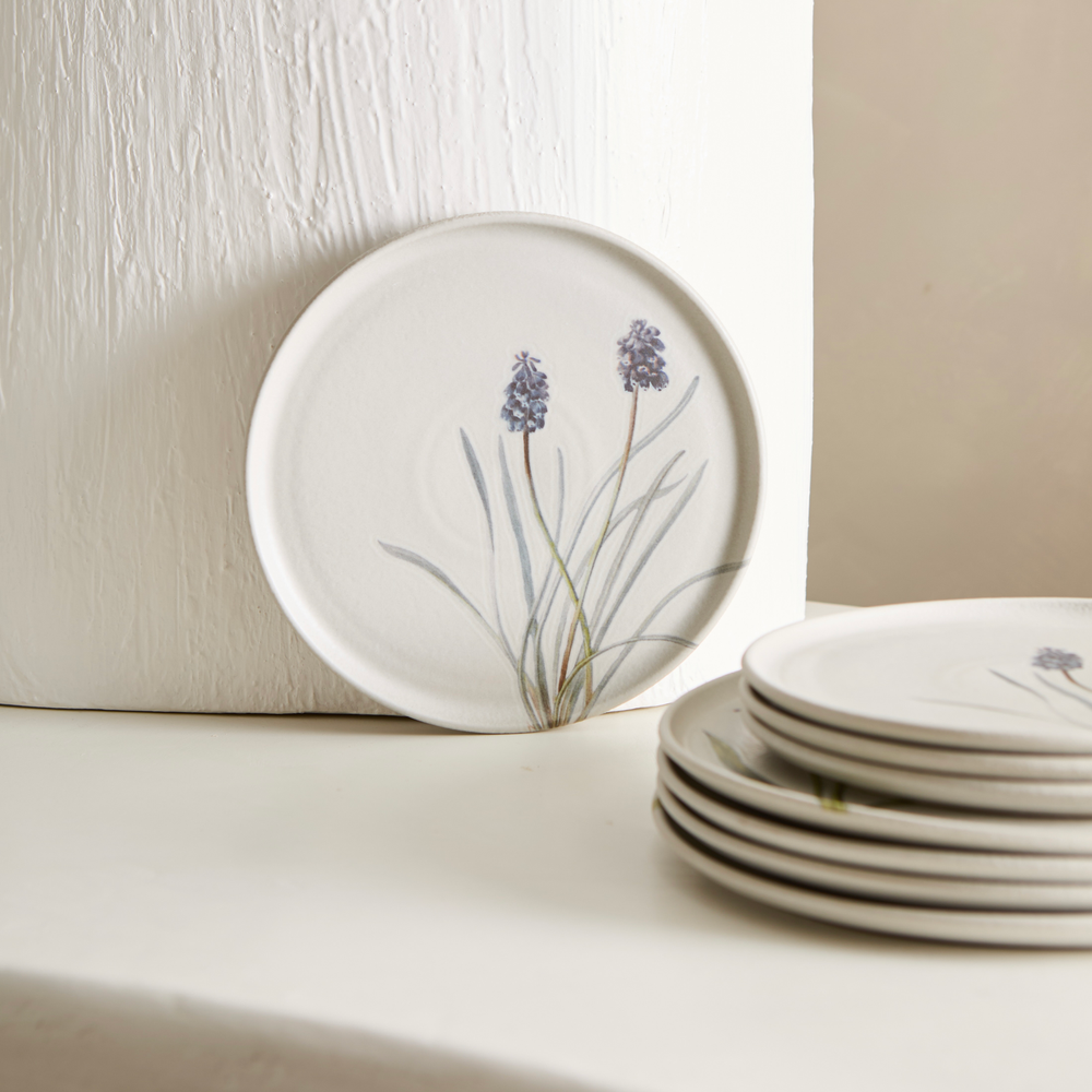Plato de postre de gres, de 19,5cm de diametro, de uso diario. Apto lavavajillas, microondas y golpes de horno.