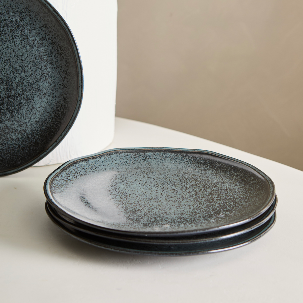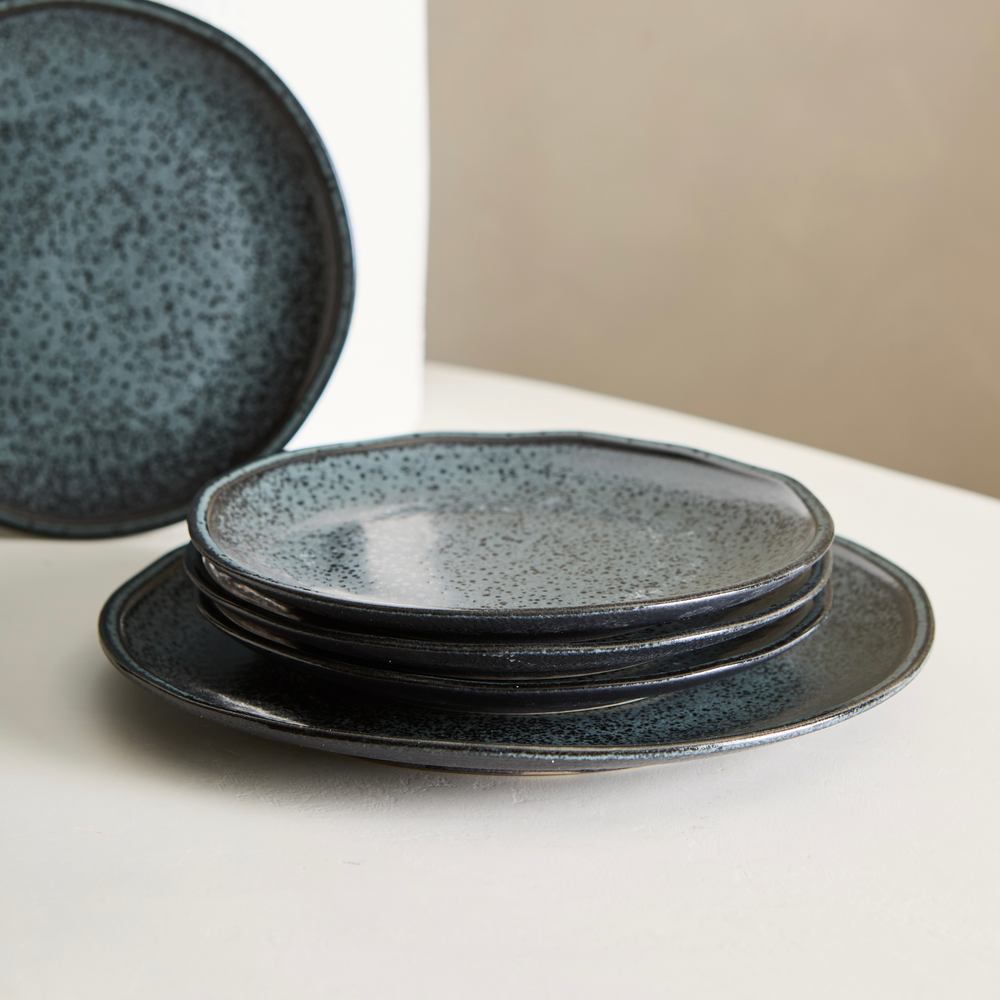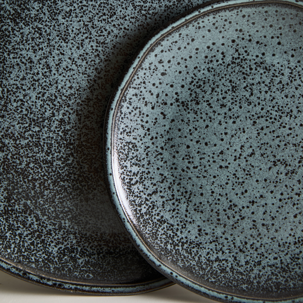 Plato de postre de gres, de 18,5cm de diametro, de uso diario. Apto lavavajillas, microondas y golpes de horno.