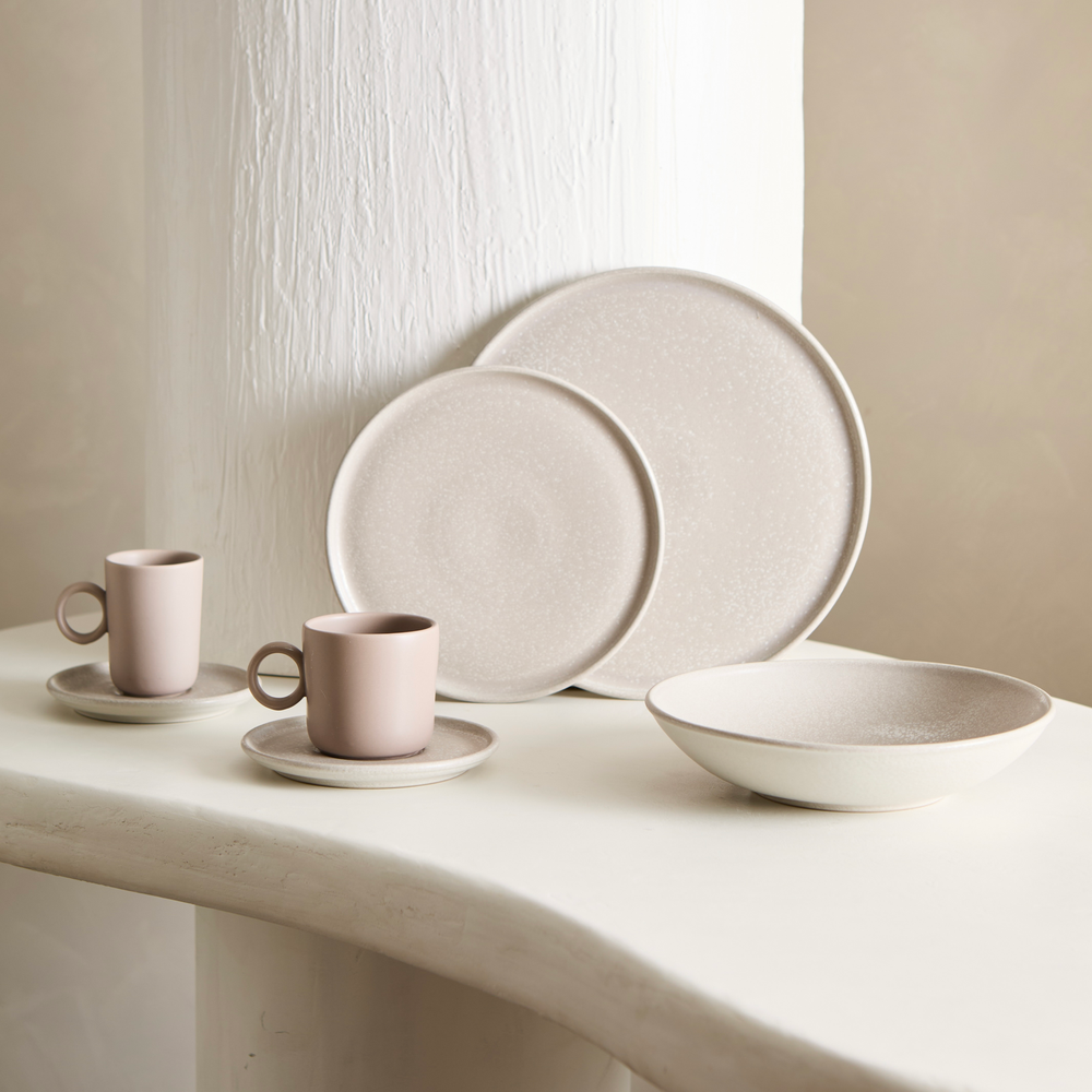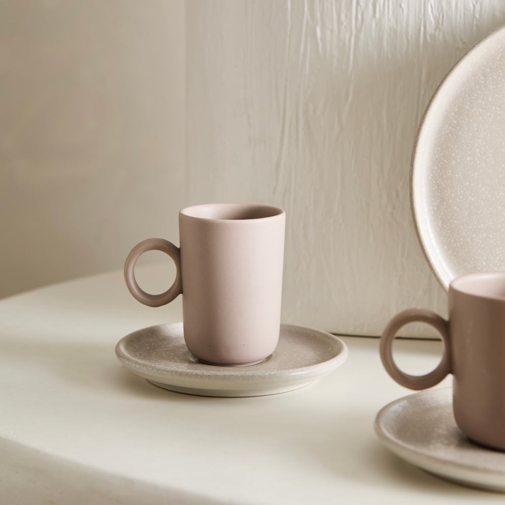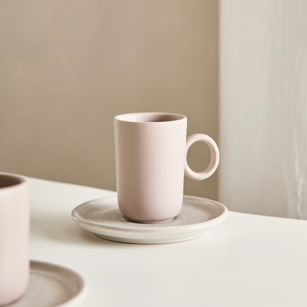 Set de taza y plato de 90ml de capacidad. Apto lavavajillas y microondas.