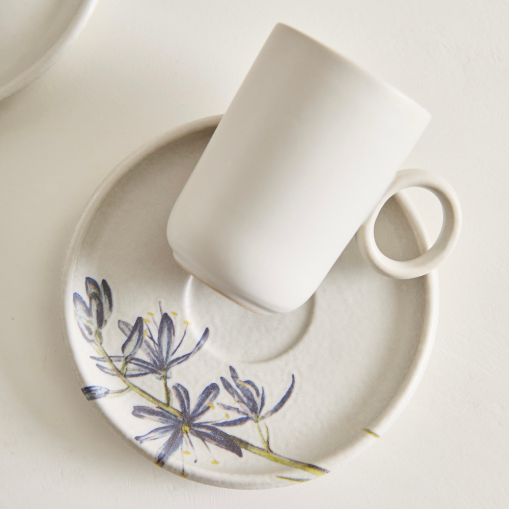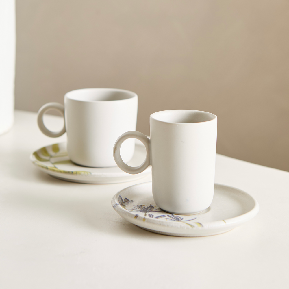 Set de taza y plato de 90ml de capacidad. Apto lavavajillas y microondas.