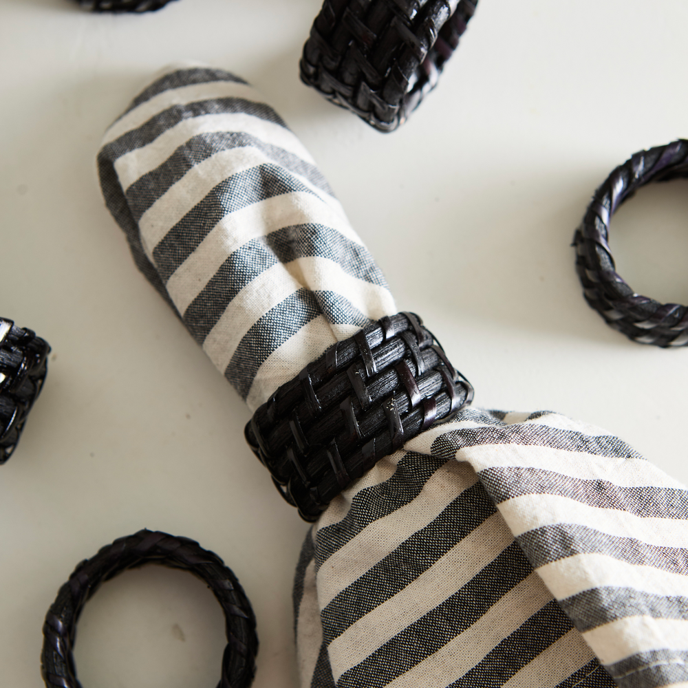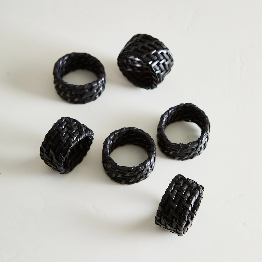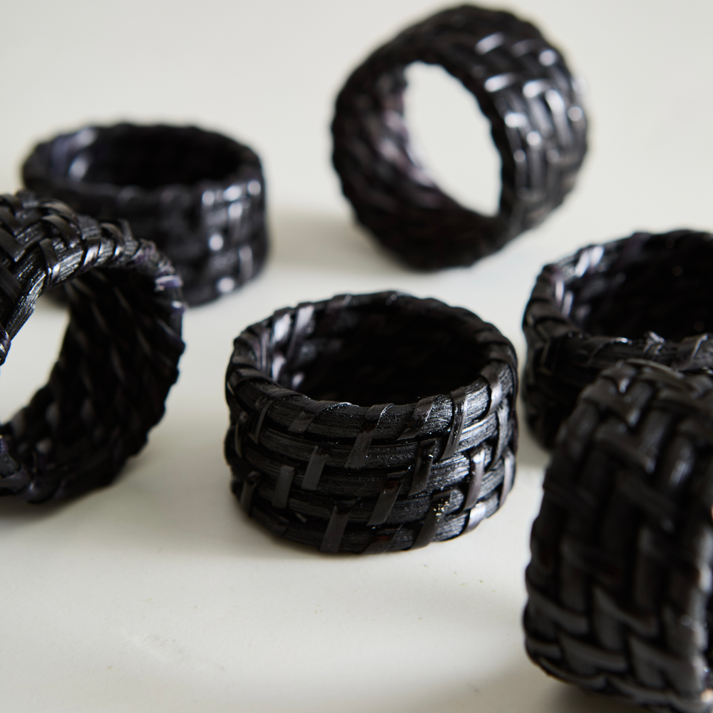 Set de 6 porta servilletas circular, de ratan y bambu, en color negro. Medidas:5cm de diametro x 3cm de alto.