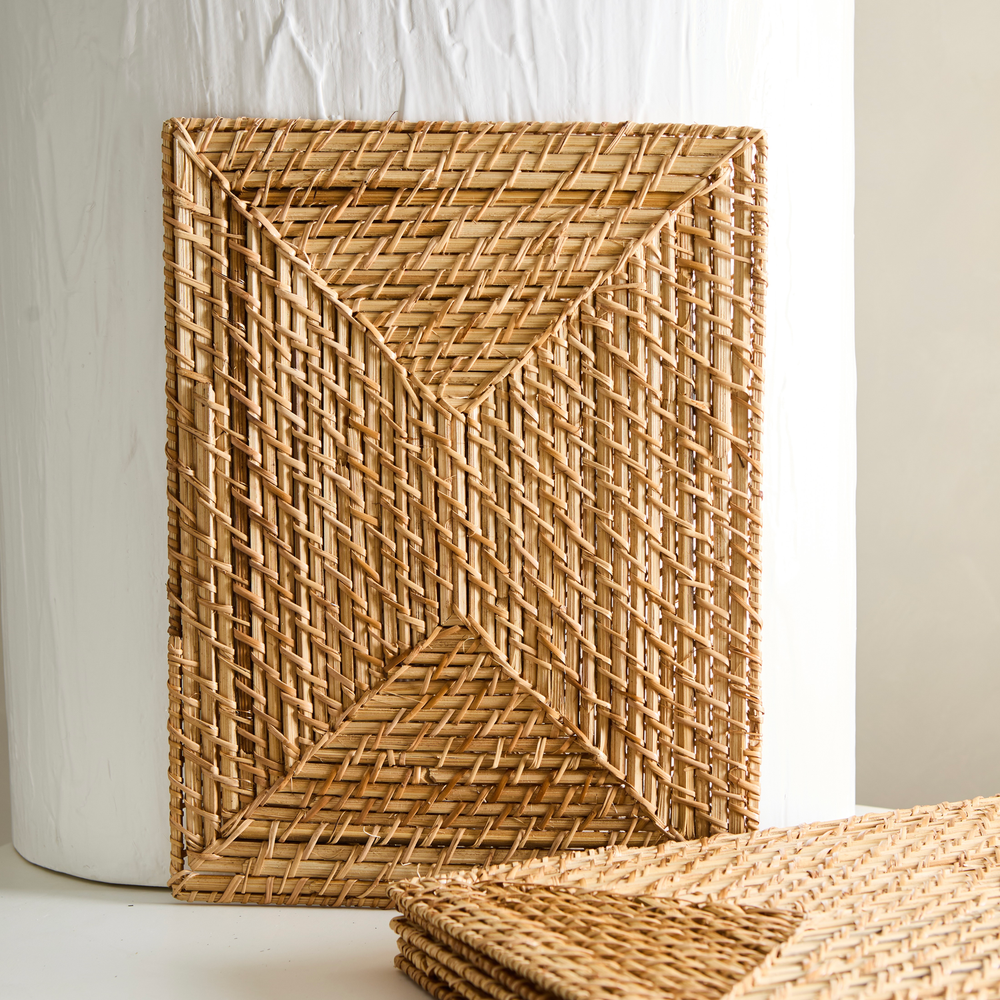 Individual rectangular, de bambu y ratan de color natural. Medidas: 40cm x 30cm.