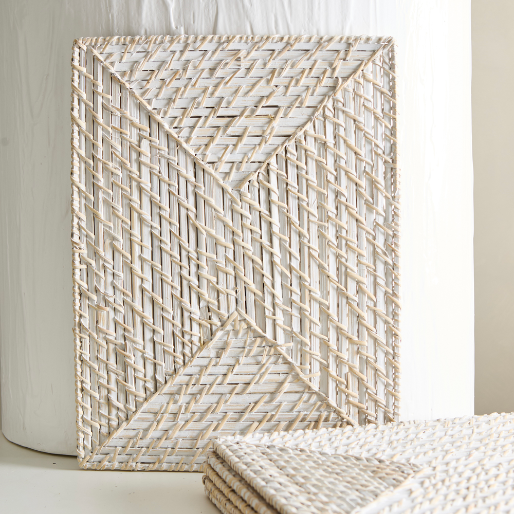 Individual rectangular, de bambu y ratan de color blanco. Medidas: 40cm x 30cm.