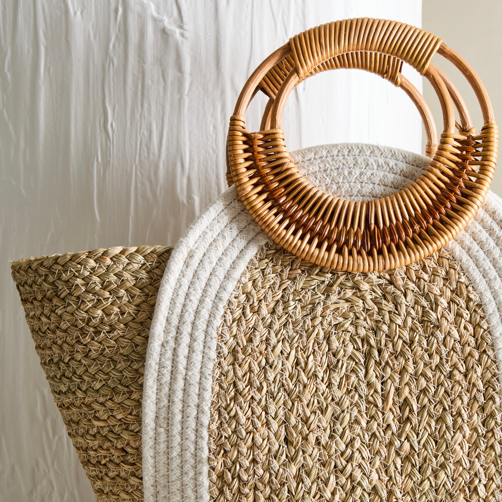 Cesta de playa ideal para usar como canasta, cartera, o lo que te guste. Medidas: 48/33 x 15 x 23h/31/40.