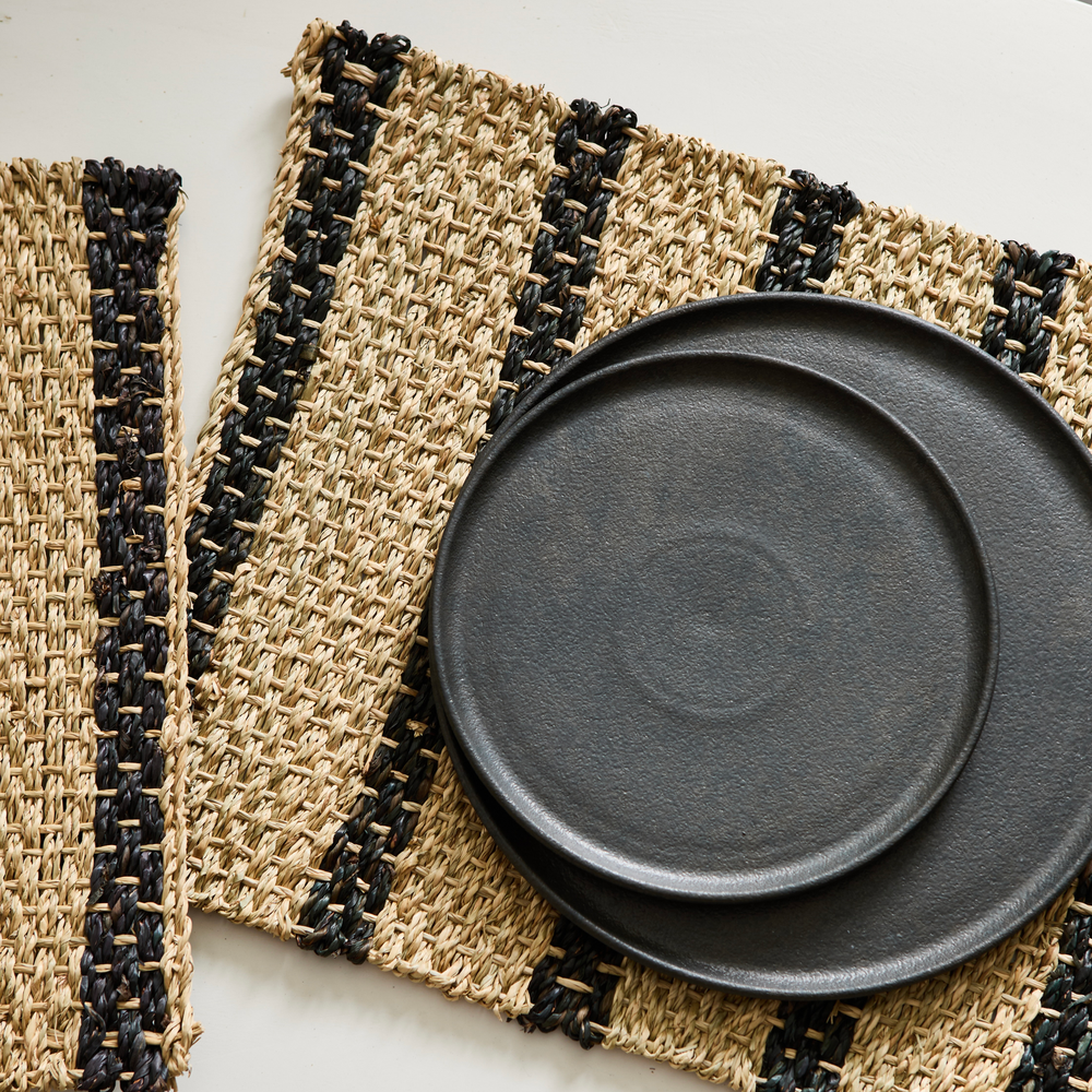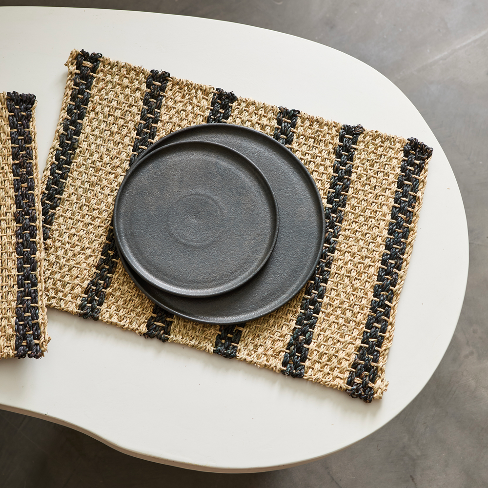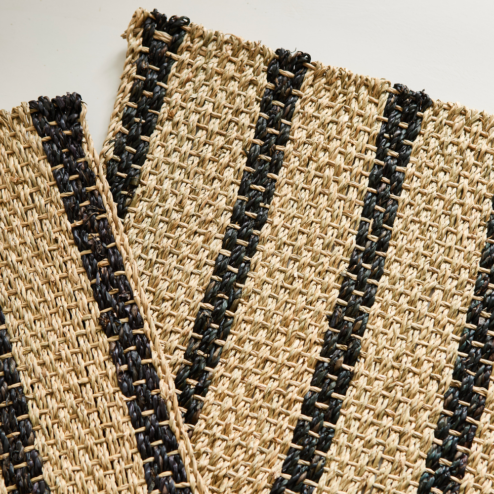 Individual trenzado de fibras naturales con rayas negras. Medidas: 45x32cm.