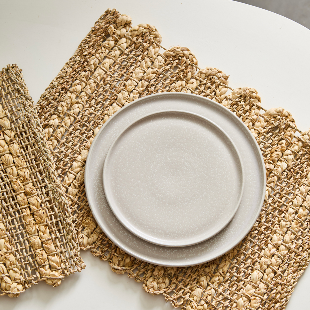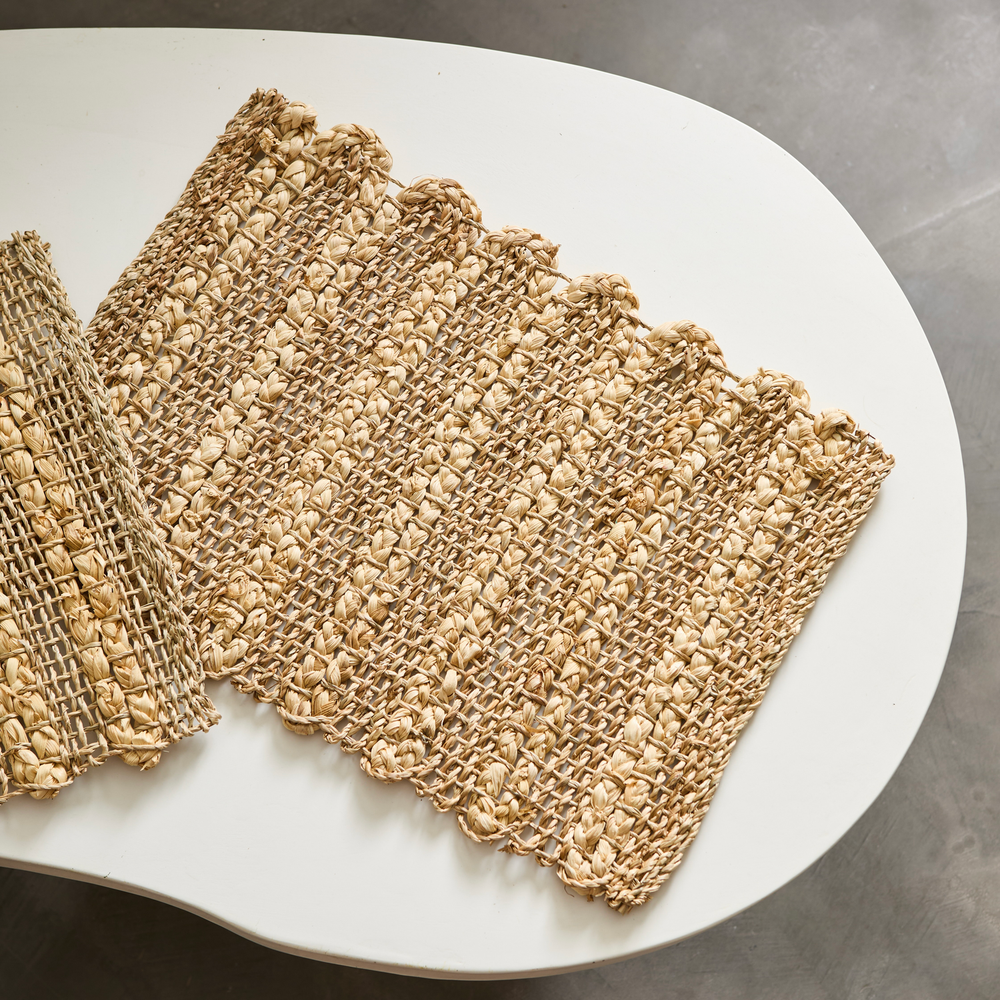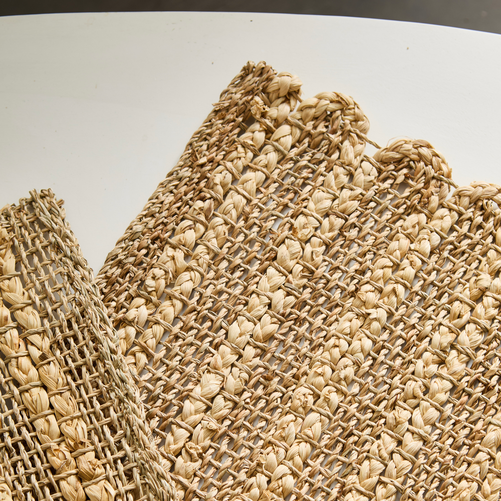 Individual trenzado de fibras naturales con detalles de rayas naturales. Medidas: 45x32cm.