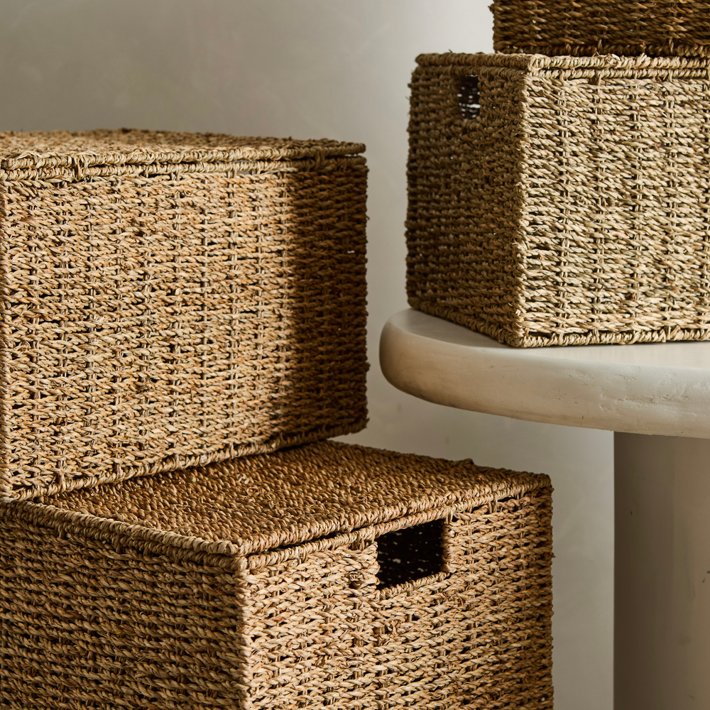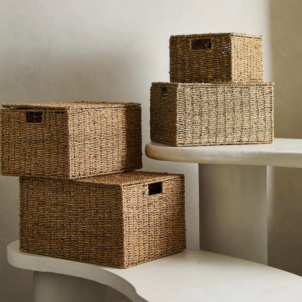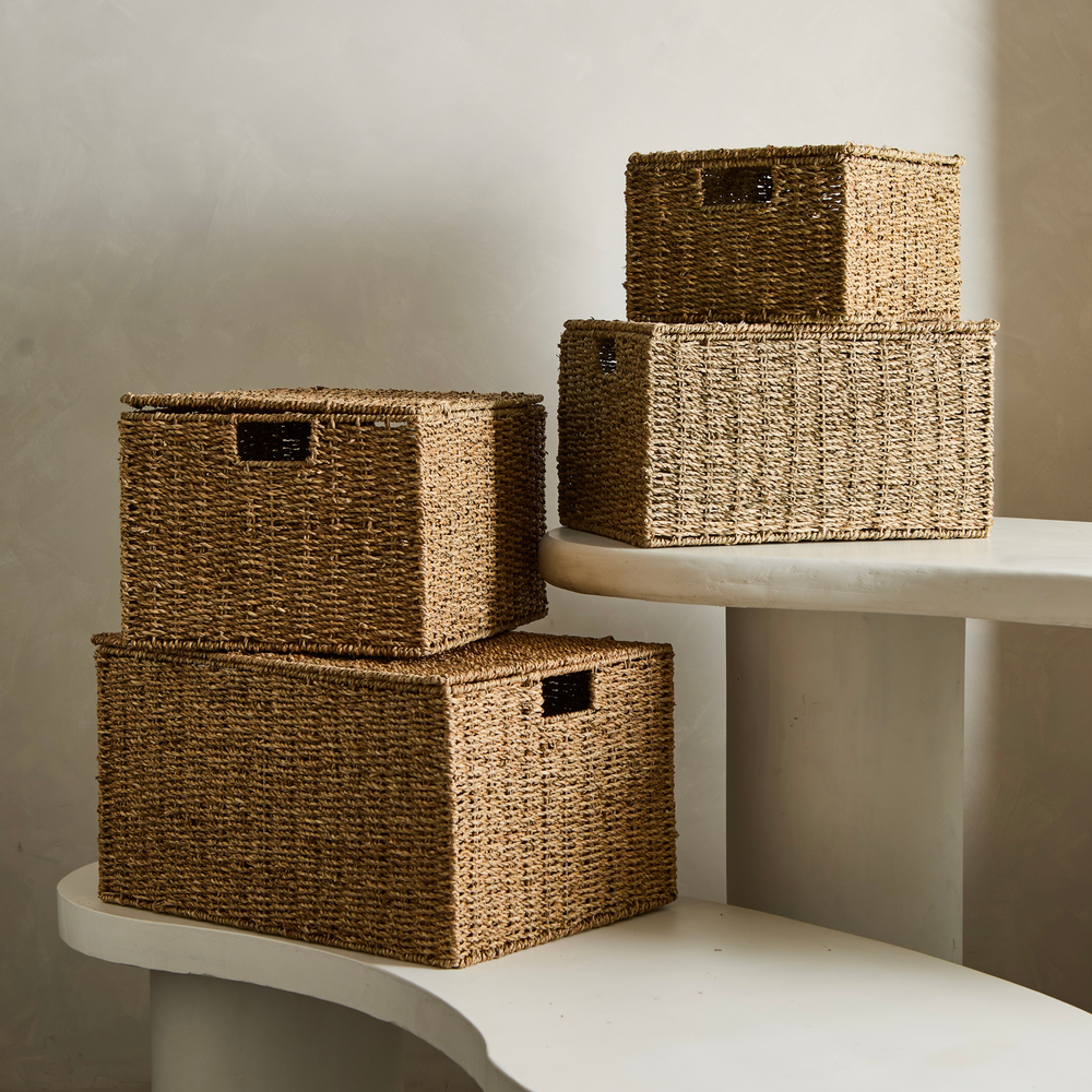 Set de 4 canastos con tapa, ideales para guardado. Medidas: 50x36xH28 45x33xH25 40x30xH23 34x26xH18