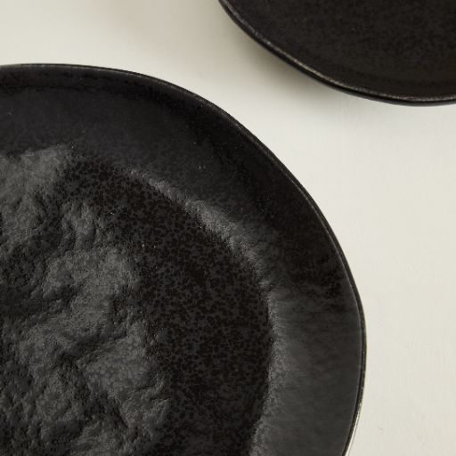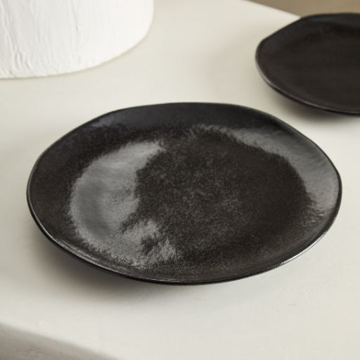 Plato playo realizado en gres, de 26,5cm de diametro. Terminación orgánica. Apto lavavajillas y microondas.