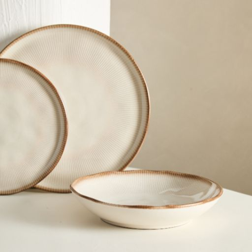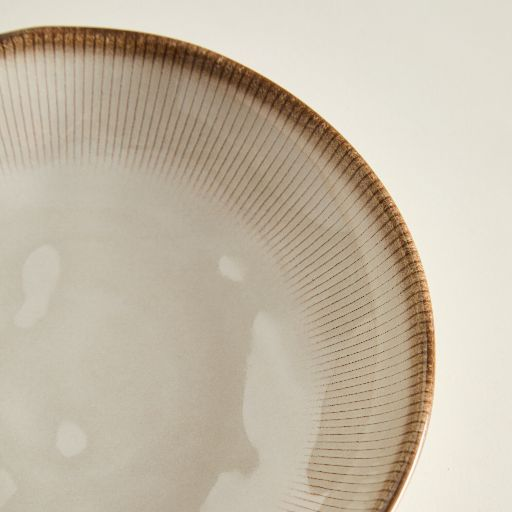 Plato hondo realizado en gres, de 22,5cm de diametro x 5cm de altura. Apto lavavajillas y microondas.