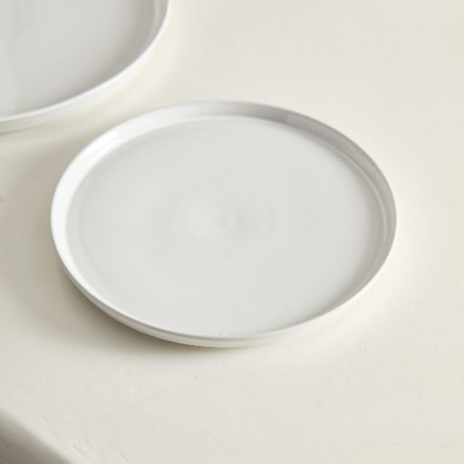 Plato de postre realizado en gres, de 21,5cm de diametro x 2cm de altura. Color blanco con terminacion brillosa. Apto lavavajillas y microondas.