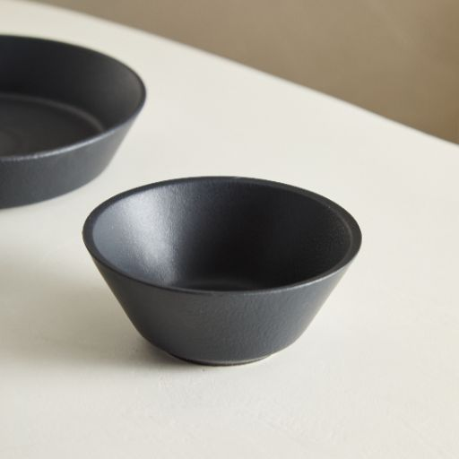 Bowl realizado en gres, de 12,4cm de diametro x 5,4cm de altura y capacidad de 298ml. Color negro opaco. Apto lavavajillas y microondas.