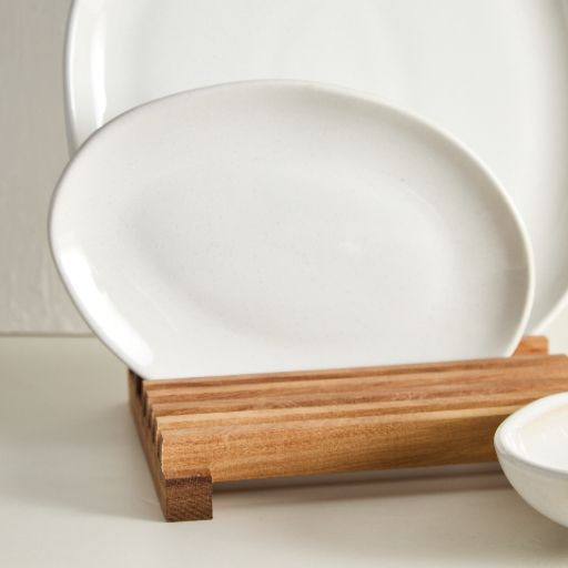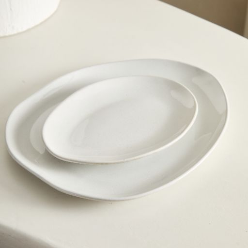 Plato de postre ovalado, fabricado en gres de altisima calidad. Medidas: 22,5x16,5x2,5cm Apto lavavajillas y microondas.